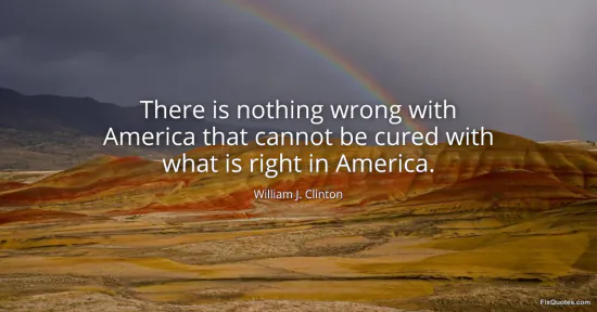 Clinton, William J. "There is nothing wrong with America that cannot be cured with what is right in America." FixQuotes. January 15, 2026. https://fixquotes.com/quotes/there-is-nothing-wrong-with-america-that-cannot-126158/.