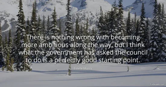 Morris, Estelle. "There is nothing wrong with becoming more ambitious along the way, but I think what the government has asked the council to do is a perfectly good starting point." FixQuotes. January 18, 2026. https://fixquotes.com/quotes/there-is-nothing-wrong-with-becoming-more-12740/.