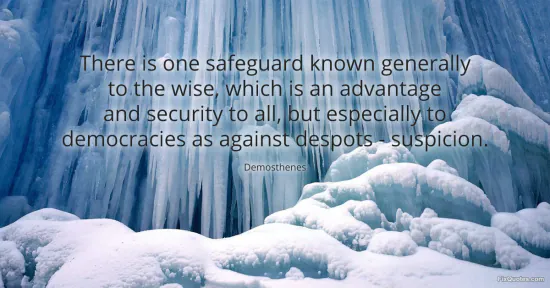 Demosthenes. "There is one safeguard known generally to the wise, which is an advantage and security to all, but especially to democracies as against despots - suspicion." FixQuotes. January 17, 2026. https://fixquotes.com/quotes/there-is-one-safeguard-known-generally-to-the-72843/.