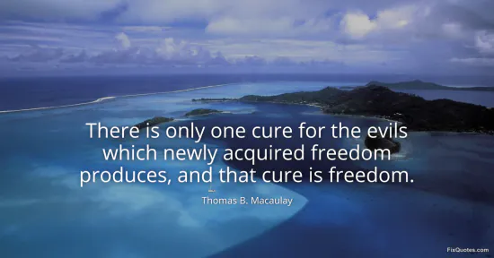 Macaulay, Thomas B. (2026, January 16). There is only one cure for the evils which newly acquired freedom produces, and that cure is freedom. FixQuotes. https://fixquotes.com/quotes/there-is-only-one-cure-for-the-evils-which-newly-110359/
