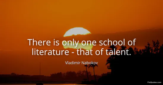 Nabokov, Vladimir. (2026, January 18). There is only one school of literature - that of talent. FixQuotes. https://fixquotes.com/quotes/there-is-only-one-school-of-literature-that-of-10619/