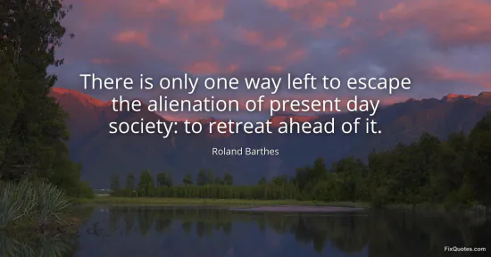 Barthes, Roland. "There is only one way left to escape the alienation of present day society: to retreat ahead of it." FixQuotes. January 16, 2026. https://fixquotes.com/quotes/there-is-only-one-way-left-to-escape-the-110014/.