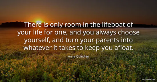 Quindlen, Anna. "There is only room in the lifeboat of your life for one, and you always choose yourself, and turn your parents into whatever it takes to keep you afloat." FixQuotes. January 17, 2026. https://fixquotes.com/quotes/there-is-only-room-in-the-lifeboat-of-your-life-34420/.