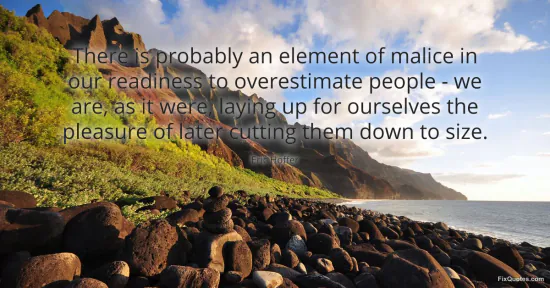 Hoffer, Eric. (2026, January 18). There is probably an element of malice in our readiness to overestimate people - we are, as it were, laying up for ourselves the pleasure of later cutting them down to size. FixQuotes. https://fixquotes.com/quotes/there-is-probably-an-element-of-malice-in-our-15690/