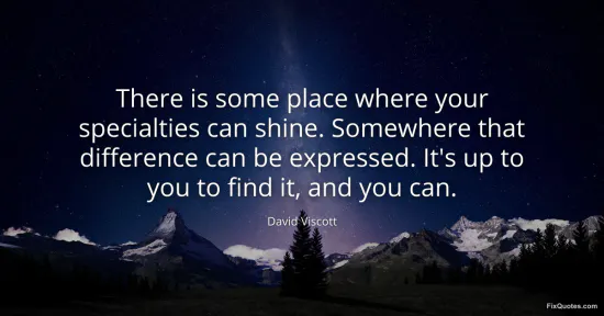 "There is some place where your specialties can shine. Somewhere that difference can be expressed. It's up to you to find it, and you can"