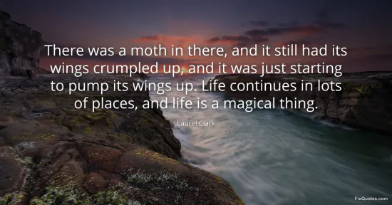 Clark, Laurel. "There was a moth in there, and it still had its wings crumpled up, and it was just starting to pump its wings up. Life continues in lots of places, and life is a magical thing." FixQuotes. January 18, 2026. https://fixquotes.com/quotes/there-was-a-moth-in-there-and-it-still-had-its-21685/.
