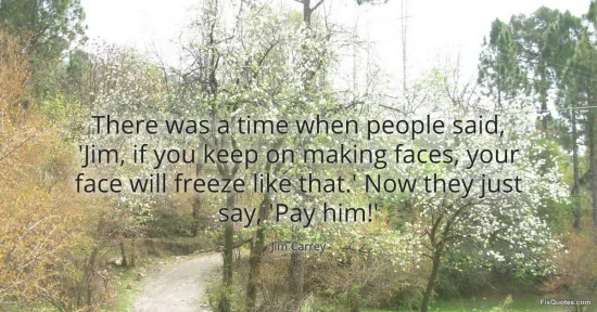 "There was a time when people said, 'Jim, if you keep on making faces, your face will freeze like that.' Now they just say, 'Pay him!'." FixQuotes, 18 Jan. 2026, https://fixquotes.com/quotes/there-was-a-time-when-people-said-jim-if-you-keep-7773/. Accessed 6 Mar. 2026.