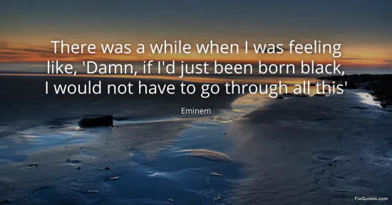 Eminem. "There was a while when I was feeling like, 'Damn, if I'd just been born black, I would not have to go through all this'." FixQuotes. January 18, 2026. https://fixquotes.com/quotes/there-was-a-while-when-i-was-feeling-like-damn-if-23511/.