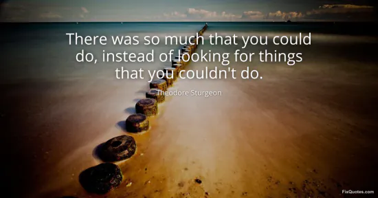 Sturgeon, Theodore. (2026, January 16). There was so much that you could do, instead of looking for things that you couldn't do. FixQuotes. https://fixquotes.com/quotes/there-was-so-much-that-you-could-do-instead-of-95398/