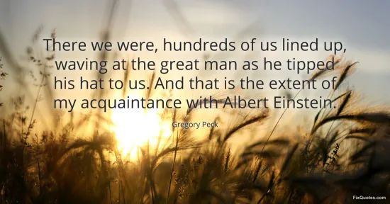 Peck, Gregory. "There we were, hundreds of us lined up, waving at the great man as he tipped his hat to us. And that is the extent of my acquaintance with Albert Einstein." FixQuotes. January 17, 2026. https://fixquotes.com/quotes/there-we-were-hundreds-of-us-lined-up-waving-at-48538/.
