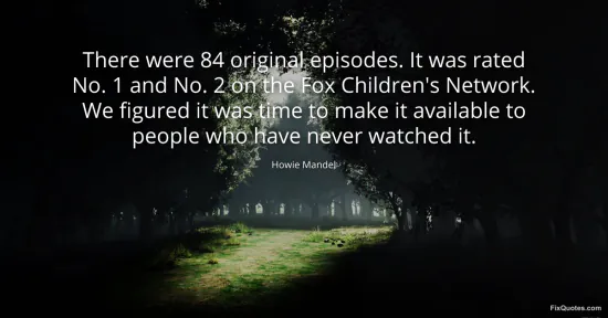 Mandel, Howie. (2026, January 16). There were 84 original episodes. It was rated No. 1 and No. 2 on the Fox Children's Network. We figured it was time to make it available to people who have never watched it. FixQuotes. https://fixquotes.com/quotes/there-were-84-original-episodes-it-was-rated-no-1-101722/