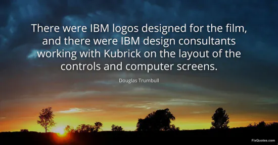 Trumbull, Douglas. "There were IBM logos designed for the film, and there were IBM design consultants working with Kubrick on the layout of the controls and computer screens." FixQuotes. January 15, 2026. https://fixquotes.com/quotes/there-were-ibm-logos-designed-for-the-film-and-145218/.