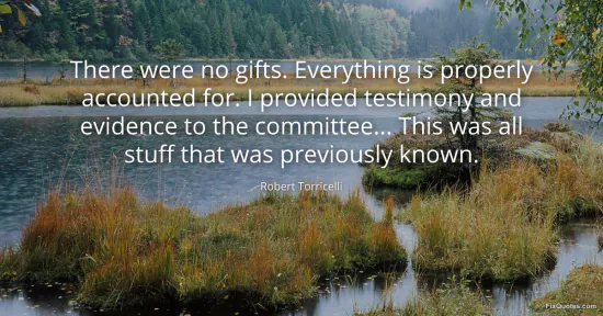 Torricelli, Robert. "There were no gifts. Everything is properly accounted for. I provided testimony and evidence to the committee... This was all stuff that was previously known." FixQuotes. January 16, 2026. https://fixquotes.com/quotes/there-were-no-gifts-everything-is-properly-102395/.
