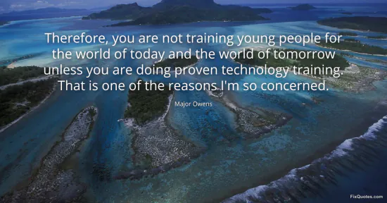 Owens, Major. (2026, January 17). Therefore, you are not training young people for the world of today and the world of tomorrow unless you are doing proven technology training. That is one of the reasons I'm so concerned. FixQuotes. https://fixquotes.com/quotes/therefore-you-are-not-training-young-people-for-72520/