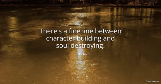 The intent is to puncture a familiar moral alibi. “Character building” is the slogan adults use to reframe suffering as productive - a tidy narrative that makes bad bosses, harsh childhoods, and grind-culture boot camps sound almost benevolent. Hay’s counterpoint is a quiet refusal to romanticize damage. The line isn’t just thin; it’s policed by people who benefit when you keep enduring.