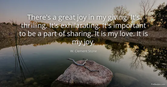 Stone, W. Clement. "There's a great joy in my giving. It's thrilling. It's exhilarating. It's important to be a part of sharing. It is my love. It is my joy." FixQuotes. January 17, 2026. https://fixquotes.com/quotes/theres-a-great-joy-in-my-giving-its-thrilling-its-29421/.