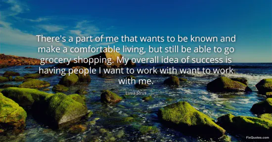 Strus, Lusia. "There's a part of me that wants to be known and make a comfortable living, but still be able to go grocery shopping. My overall idea of success is having people I want to work with want to work with me." FixQuotes. February 17, 2026. https://fixquotes.com/quotes/theres-a-part-of-me-that-wants-to-be-known-and-102277/.