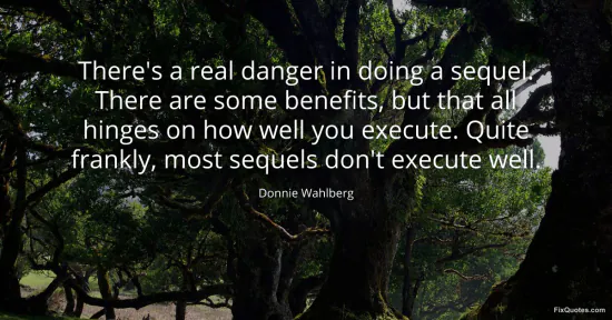 Wahlberg, Donnie. "There's a real danger in doing a sequel. There are some benefits, but that all hinges on how well you execute. Quite frankly, most sequels don't execute well." FixQuotes. January 17, 2026. https://fixquotes.com/quotes/theres-a-real-danger-in-doing-a-sequel-there-are-45569/.