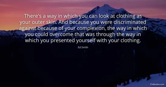 Smith, Ed. (2026, January 17). There's a way in which you can look at clothing as your outer skin. And because you were discriminated against because of your complexion, the way in which you could overcome that was through the way in which you presented yourself with your clothing. FixQuotes. https://fixquotes.com/quotes/theres-a-way-in-which-you-can-look-at-clothing-as-41910/
