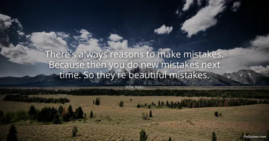 Valo, Ville. "There's always reasons to make mistakes. Because then you do new mistakes next time. So they're beautiful mistakes." FixQuotes. Accessed February 2, 2026. https://fixquotes.com/quotes/theres-always-reasons-to-make-mistakes-because-116488/.