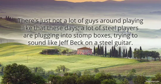 Fogerty, John. "There's just not a lot of guys around playing like that these days; a lot of steel players are plugging into stomp boxes, trying to sound like Jeff Beck on a steel guitar." FixQuotes. January 16, 2026. https://fixquotes.com/quotes/theres-just-not-a-lot-of-guys-around-playing-like-93896/.