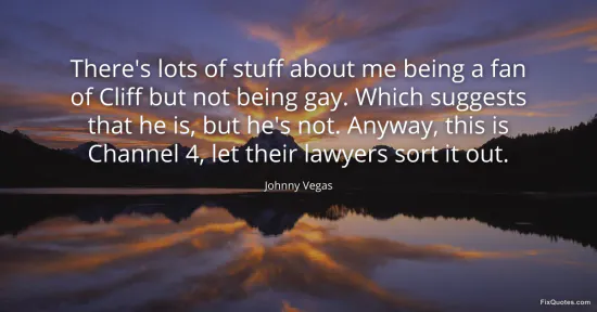 Vegas, Johnny. "There's lots of stuff about me being a fan of Cliff but not being gay. Which suggests that he is, but he's not. Anyway, this is Channel 4, let their lawyers sort it out." FixQuotes. January 15, 2026. https://fixquotes.com/quotes/theres-lots-of-stuff-about-me-being-a-fan-of-148664/.