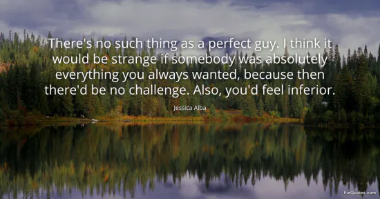 Alba, Jessica. "There's no such thing as a perfect guy. I think it would be strange if somebody was absolutely everything you always wanted, because then there'd be no challenge. Also, you'd feel inferior." FixQuotes. January 15, 2026. https://fixquotes.com/quotes/theres-no-such-thing-as-a-perfect-guy-i-think-it-156340/.