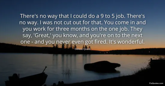 Quaid, Dennis. (2026, January 15). There's no way that I could do a 9 to 5 job. There's no way. I was not cut out for that. You come in and you work for three months on the one job. They say, 'Great,' you know, and you're on to the next one - and you never even got fired. It's wonderful. FixQuotes. https://fixquotes.com/quotes/theres-no-way-that-i-could-do-a-9-to-5-job-theres-161228/