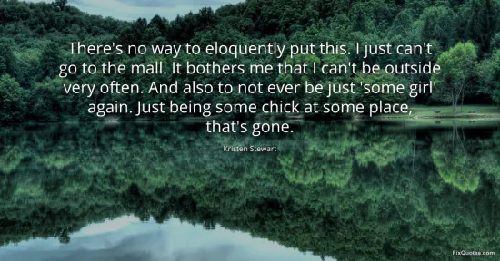 Stewart, Kristen. "There's no way to eloquently put this. I just can't go to the mall. It bothers me that I can't be outside very often. And also to not ever be just 'some girl' again. Just being some chick at some place, that's gone." FixQuotes. January 16, 2026. https://fixquotes.com/quotes/theres-no-way-to-eloquently-put-this-i-just-cant-99012/.