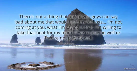 "There's not a thing that any of you guys can say bad about me that would hurt my feelings... I'm not coming at you, what I'm saying is that, I'm willing to take that heat for my team, if we're playing well or if we're not playing well." FixQuotes, 16 Jan. 2026, https://fixquotes.com/quotes/theres-not-a-thing-that-any-of-you-guys-can-say-136321/. Accessed 12 Feb. 2026.