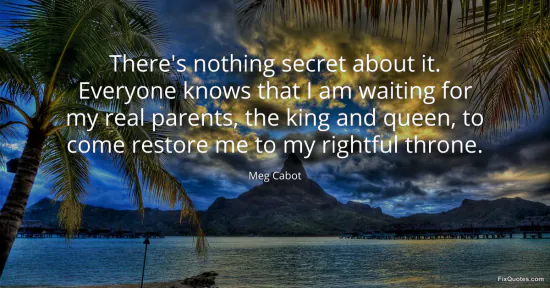 Cabot, Meg. (2026, January 16). There's nothing secret about it. Everyone knows that I am waiting for my real parents, the king and queen, to come restore me to my rightful throne. FixQuotes. https://fixquotes.com/quotes/theres-nothing-secret-about-it-everyone-knows-132510/