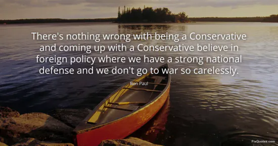 Paul, Ron. "There's nothing wrong with being a Conservative and coming up with a Conservative believe in foreign policy where we have a strong national defense and we don't go to war so carelessly." FixQuotes. January 17, 2026. https://fixquotes.com/quotes/theres-nothing-wrong-with-being-a-conservative-36539/.