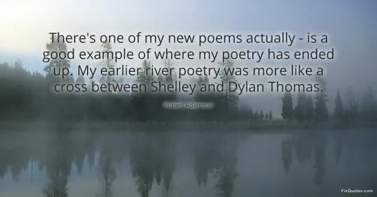 Adamson, Robert. "There's one of my new poems actually - is a good example of where my poetry has ended up. My earlier river poetry was more like a cross between Shelley and Dylan Thomas." FixQuotes. January 16, 2026. https://fixquotes.com/quotes/theres-one-of-my-new-poems-actually-is-a-good-98181/.