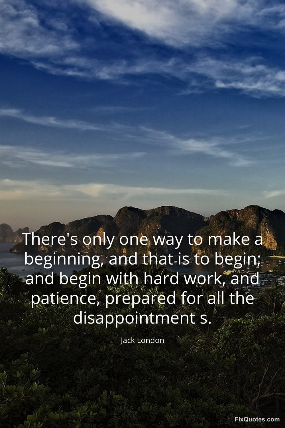 London, Jack. (2026, January 15). There's only one way to make a beginning, and that is to begin; and begin with hard work, and patience, prepared for all the disappointment s. FixQuotes. https://fixquotes.com/quotes/theres-only-one-way-to-make-a-beginning-and-that-173097/