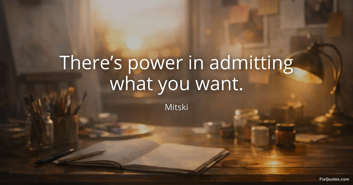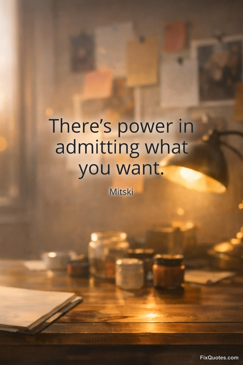 Mitski. "There’s power in admitting what you want." FixQuotes. February 1, 2026. https://fixquotes.com/quotes/theres-power-in-admitting-what-you-want-184728/.