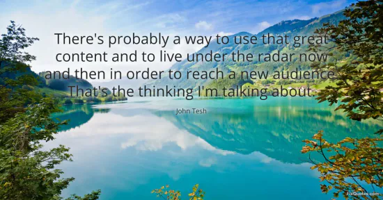 Tesh, John. (2026, January 16). There's probably a way to use that great content and to live under the radar now and then in order to reach a new audience. That's the thinking I'm talking about. FixQuotes. https://fixquotes.com/quotes/theres-probably-a-way-to-use-that-great-content-103075/