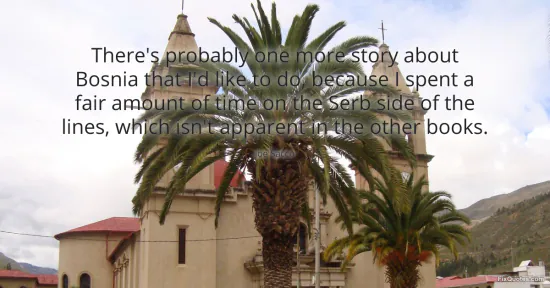 "There's probably one more story about Bosnia that I'd like to do, because I spent a fair amount of time on the Serb side of the lines, which isn't apparent in the other books." FixQuotes, 16 Jan. 2026, https://fixquotes.com/quotes/theres-probably-one-more-story-about-bosnia-that-117787/. Accessed 12 Feb. 2026.