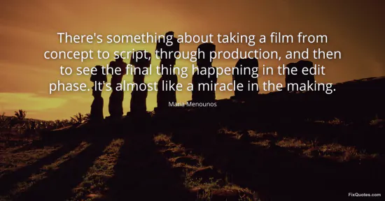 Menounos, Maria. "There's something about taking a film from concept to script, through production, and then to see the final thing happening in the edit phase. It's almost like a miracle in the making." FixQuotes. January 16, 2026. https://fixquotes.com/quotes/theres-something-about-taking-a-film-from-concept-114503/.
