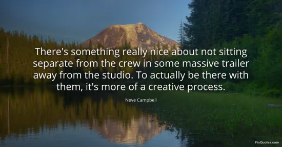 Campbell, Neve. (2026, January 16). There's something really nice about not sitting separate from the crew in some massive trailer away from the studio. To actually be there with them, it's more of a creative process. FixQuotes. https://fixquotes.com/quotes/theres-something-really-nice-about-not-sitting-96215/