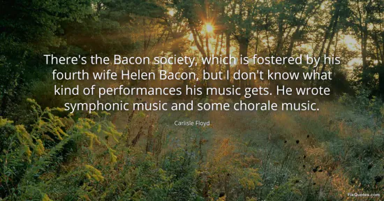 Floyd, Carlisle. (2026, January 17). There's the Bacon society, which is fostered by his fourth wife Helen Bacon, but I don't know what kind of performances his music gets. He wrote symphonic music and some chorale music. FixQuotes. https://fixquotes.com/quotes/theres-the-bacon-society-which-is-fostered-by-his-44522/