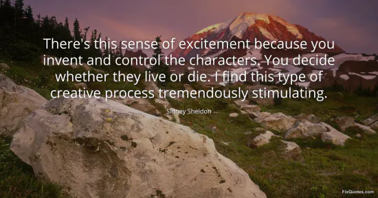 Sheldon, Sidney. (2026, January 16). There's this sense of excitement because you invent and control the characters. You decide whether they live or die. I find this type of creative process tremendously stimulating. FixQuotes. https://fixquotes.com/quotes/theres-this-sense-of-excitement-because-you-116725/