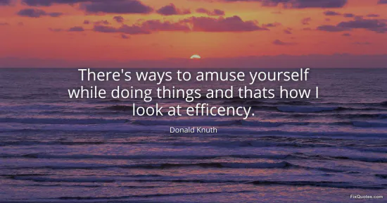 Context matters because “efficiency” in computer science has a double edge. Knuth is famous for warning against premature optimization, and this quote fits that worldview: efficiency isn’t a frantic race to shave cycles; it’s a mindset that makes the process sustainable. He’s also gently puncturing the macho mythology of the programmer-hero grinding through the night. The twist is that amusement becomes a legitimate engineering tool: it’s how you stay attentive, how you notice patterns, how you keep the craft from turning into compliance.