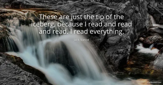 Vance, Jack. (2026, January 15). These are just the tip of the iceberg, because I read and read and read. I read everything. FixQuotes. https://fixquotes.com/quotes/these-are-just-the-tip-of-the-iceberg-because-i-144578/