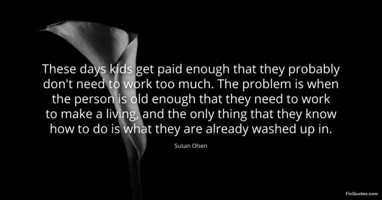 Olsen, Susan. (2026, January 16). These days kids get paid enough that they probably don't need to work too much. The problem is when the person is old enough that they need to work to make a living, and the only thing that they know how to do is what they are already washed up in. FixQuotes. https://fixquotes.com/quotes/these-days-kids-get-paid-enough-that-they-123121/