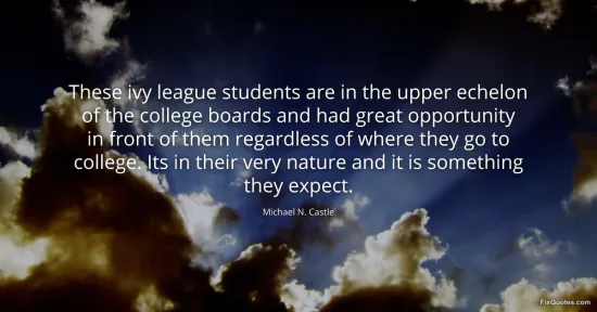 Castle, Michael N. "These ivy league students are in the upper echelon of the college boards and had great opportunity in front of them regardless of where they go to college. Its in their very nature and it is something they expect." FixQuotes. January 16, 2026. https://fixquotes.com/quotes/these-ivy-league-students-are-in-the-upper-115762/.