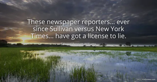 Williams, Edward Bennett. "These newspaper reporters... ever since Sullivan versus New York Times... have got a license to lie." FixQuotes. January 15, 2026. https://fixquotes.com/quotes/these-newspaper-reporters-ever-since-sullivan-141465/.