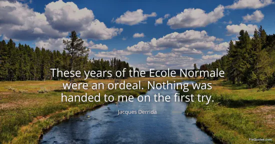 Derrida, Jacques. (2026, January 17). These years of the Ecole Normale were an ordeal. Nothing was handed to me on the first try. FixQuotes. https://fixquotes.com/quotes/these-years-of-the-ecole-normale-were-an-ordeal-24298/