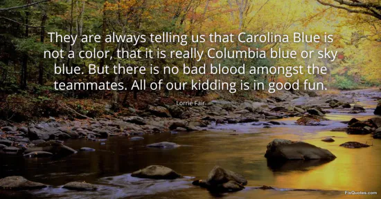 Fair, Lorrie. (2026, January 15). They are always telling us that Carolina Blue is not a color, that it is really Columbia blue or sky blue. But there is no bad blood amongst the teammates. All of our kidding is in good fun. FixQuotes. https://fixquotes.com/quotes/they-are-always-telling-us-that-carolina-blue-is-148943/