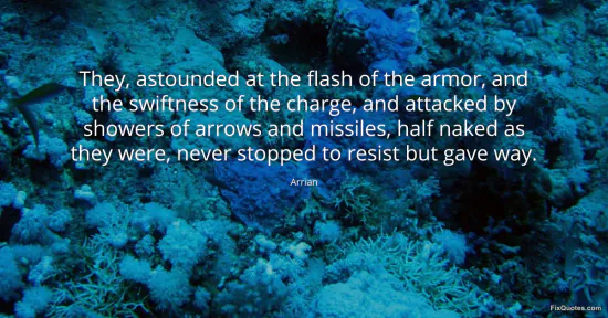 Arrian. (2026, January 16). They, astounded at the flash of the armor, and the swiftness of the charge, and attacked by showers of arrows and missiles, half naked as they were, never stopped to resist but gave way. FixQuotes. https://fixquotes.com/quotes/they-astounded-at-the-flash-of-the-armor-and-the-122938/
