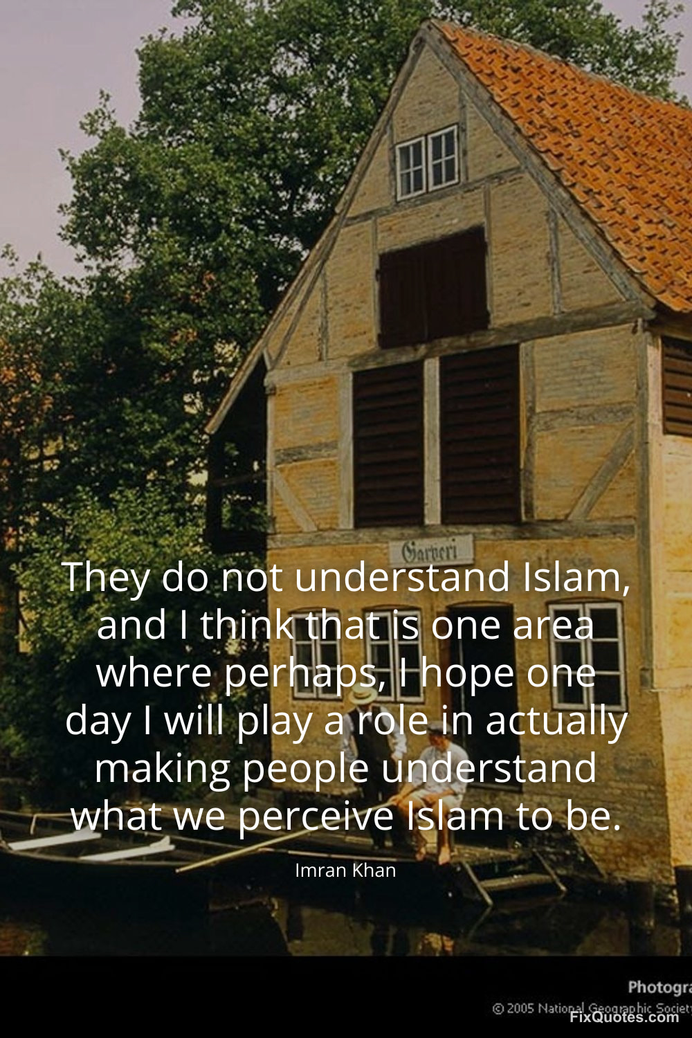 Khan, Imran. (2026, February 16). They do not understand Islam, and I think that is one area where perhaps, I hope one day I will play a role in actually making people understand what we perceive Islam to be. FixQuotes. https://fixquotes.com/quotes/they-do-not-understand-islam-and-i-think-that-is-119481/